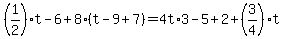 -> SOLUTION: 1/2t-6+8(t-9+7)=4t*3-5+2+3/4t
