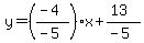y=%28%28-4%29%2F%28-5%29%29x%2B%2813%29%2F%28-5%29 Break up the fraction.