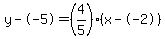 y--5=%284%2F5%29%28x--2%29 Plug in m=4%2F5, x%5B1%5D=-2, and y%5B1%5D=-5