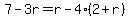 3) Use the distributive property to expand the right side. Collect like-terms on the right side. Add 3r to both sides. To get the variable onto one side of the equation. This can't be true. So the initial equation was inconsistent, i.e., not really an equation.