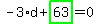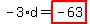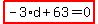 Look at . Solved linear equation equivalent to -3*d+63 =0 It becomes . Result: