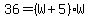 Area = W*(W+5) = W^2 + 5W = 36