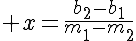 Algebra ->  Equations -> SOLUTION: this question is a system of two equation:y=m subcript 1 x +b subscript 1 and y= m subcript 2 x + b subscript 2 solve for x and y the answer is:x=b subs 2 -b subscript 1 over      Log On