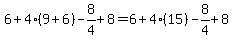 -> SOLUTION: How do you solve this? 6+4(9+6)-8/4+8=