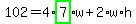 Look at . Replaced s with 102 It becomes . Look at . Replaced l with 7 It becomes . Look at . Replaced w with 3 It becomes . Look at . Replaced w with 3 It becomes . Look at . Moved to the right of expression It becomes . Look at . Multiplied numerator integers It becomes . Look at . Multiplied numerator integers It becomes . Look at . Moved these terms to the left , It becomes . Look at . Added fractions or integers together It becomes . Look at . Moved to the right of expression It becomes . Look at . Solved linear equation equivalent to -6*h+18 =0 It becomes . Result: This is an equation! Solutions: h=3.