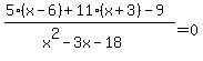 -> SOLUTION: 5/x+3 + 11/x-6 = 9/x^2-3x-18