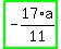 Look at . Remove unneeded parentheses around terms It becomes . Look at . Remove unneeded parentheses around terms It becomes . Look at . Remove unneeded parentheses around terms It becomes . Look at . Eliminated similar terms, replacing them with It becomes . Look at . Added fractions or integers together It becomes . Look at . Remove unneeded parentheses around factor , It becomes . Look at . Remove unneeded parentheses around terms It becomes . Look at . Remove unneeded parentheses around terms It becomes . Look at . Moved to the right of expression It becomes . Look at . Moved these terms to the left , It becomes . Look at . Added fractions or integers together It becomes . Look at . Moved to the right of expression It becomes . Look at . Factors 55 and 10 have greatest common factor (GCF) of 5. Reducing fraction. It becomes . Look at . Eliminated similar terms, replacing them with It becomes . Look at . Multiplied numerator integers It becomes . Look at . Multiplied numerator integers It becomes . Look at . Added fractions or integers together It becomes . Look at . Remove unneeded parentheses around factor , It becomes . Look at . Factors 11 and 22 have greatest common factor (GCF) of 11. Reducing fraction. It becomes . Look at . Remove extraneous '1' from product It becomes . Look at . Solved linear equation equivalent to 0.5*a-5.5 =0 It becomes . Result: This is an equation! Solutions: a=11.