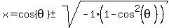 highlight%28x=cos%28theta%29%2B-+sqrt%28cos%5E2%28theta%29-1%29%29