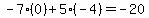 I see a small arithmetic error in your first equation. Multiplying the right side by 2 gives (2)(-20)=-40 so your new equation would be -14x+10x=-40.