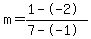 m=+3%2F8 Subtract the terms in the numerator 1--2 to get 3. Subtract the terms in the denominator 7--1 to get 8