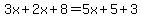 3x+2(x+4)=5(x+1)+3 Found 2 solutions by jim_thompson5910, josmiceli:Answer by jim_thompson5910(35256) (Show Source):