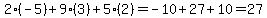 2%28-5%29%2B9%283%29%2B5%282%29=-10%2B27%2B10=27