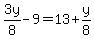 3y - 72 = 104 + y ------- Multiplying by LCD, 8