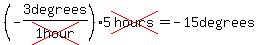 The temperature is dropping 3 degrees an hour. What is the change in temperature over a 5 hour period....
