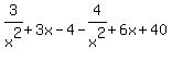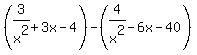 Question 71396: Combine: (3/x(to the 2nd) + 3x - 4) - (4/x(to the 2nd) - 6x - 40)