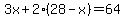 Question 74508: A total of 28 bikes have 64 wheels. Some have 2 wheels and some have 3. How many have three wheels?