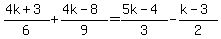 solve for k 4k+3/6+4k-8/9=5k-4/3-k-3/2