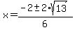 x+=+%28-2+%2B+2%2Asqrt%2813%29%29%2F6 or x+=+%28-2+-+2%2Asqrt%2813%29%29%2F6