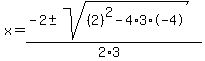 x+=+%28-2+%2B-+sqrt%28+4-4%2A3%2A-4+%29%29%2F%282%2A3%29 Square 2 to get 4