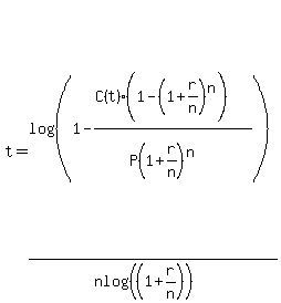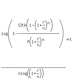 ...and modified it to reflect annual investments. In this equation, C(t) is your cumulative sum, P is the amount invested ANNUALLY, for t years, interest rate of r (as a decimal), compounded n times per year: