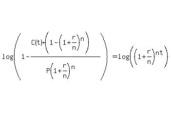 Now, I have to solve THIS equation for t. I'm getting stumped when it comes down to logs and trying to isolate t.. this is the work I've come up to so far, please let me know if I'm messing anything up. If all is correct up to this point, I don't know how to finish it!