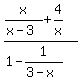 "x over x-3 plus 4 over x OVER 1 minus 1over 3-x " Found 3 solutions by josgarithmetic, lwsshak3, MathTherapy:Answer by josgarithmetic(39630) (Show Source):