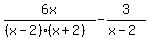 Please help me solve this problem 6x/(x^2-4)+3/(2-x) I am trying to understand the steps and how to figure it out.