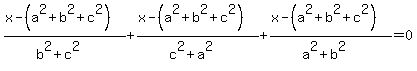 SOLUTION: Solve for X, X-a^2/b^2+c^2 + X-b^2/c^2+a^2 + X-c^2/a^2+b^2=3