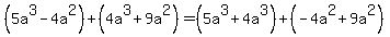 %285a%5E3+-+4a%5E2%29+%2B+%284a%5E3+%2B+9a%5E2%29+=9a%5E3+%2B+5a%5E2