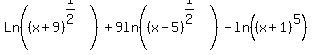 ln(square root (x+9) multiply 9square root (x-5) divided by (x+1)^5