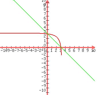 (red) and y = 3-x (green) There are two roots x= 0 and x= 3. There are NO other roots.