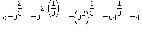 and simplify. If you have trouble with fractional exponents, look at the fraction in a factored form. For 2/3 this can be or . Either way the factor of two means we're going to square something and the factor of 1/3 means we are going to find a cube root. And we can do this things in either order: