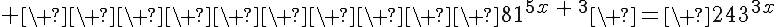 SOLUTION: solve 81^5x+3=243^3x using logarithms