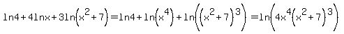 -> SOLUTION: Rewrite the expression as a single logarithm ln4+4lnx+3ln(x^2+7)