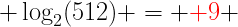 log2 512 = log(512)/log(2) = log(2^9)/log(2) = 9*log(2)/log(2) = 9