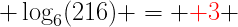 log6 216 = log(216)/log(6) = log(6^3)/log(6) = 3*log(6)/log(6) = 3