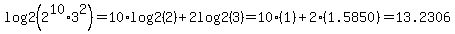 log (2,(2^10 * 3^2) = log(2,2^10) + log(2,3^2)