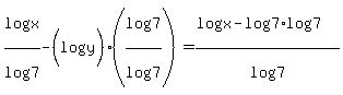 -> SOLUTION: write the following expression as a single logarithm: log x/ log 7- log y. I got the answer log x/ 7y. but I searched the internet and they said that the answer was log 7x/ y. so w