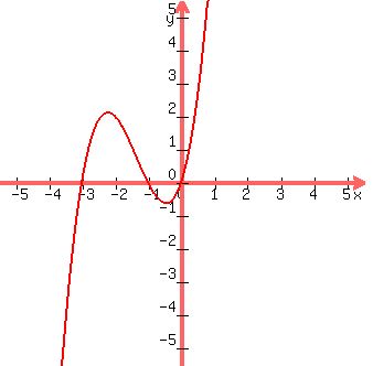 The graph of f lies below the x-axis in the semi-infinite interval (,) and in the interval (-1, 0).