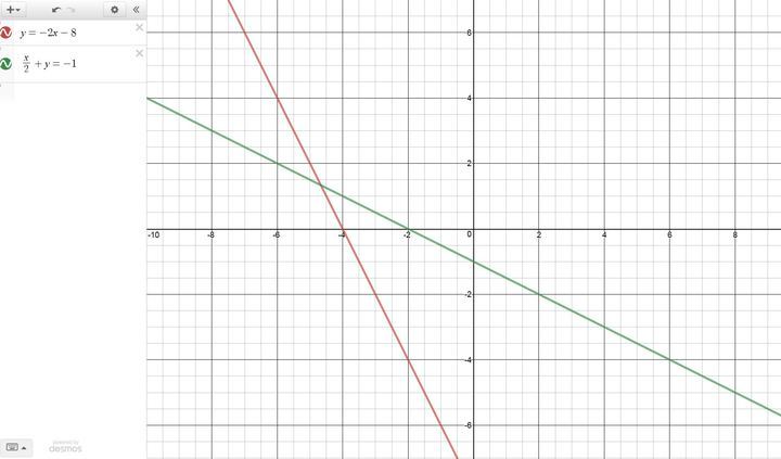 -> SOLUTION: Y=-2x–8, 1/2x+y=-1 A. Parallel B. Perpendicular C. Neither
