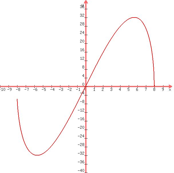-> SOLUTION: Perform a first derivative test on the function f(x)= x sqrt(64-x^2);[-8,8].