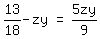 13 - 18zy = 10zy ----- Multiplying by LCD, 18