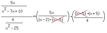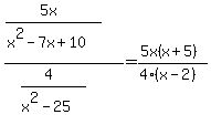 (5x over x^2-7x+10)divided by (4 over x^2-25)