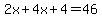 -> SOLUTION: Find two consecutive integers such that the sum of 2 times the first integer and 4 times second integer is 46.
