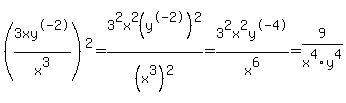 (3xy^-2/x^3)^2== 9/(x^4y^4)