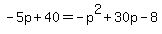 -5p+%2B+40+=+-p%5E2+%2B+30p+-+8