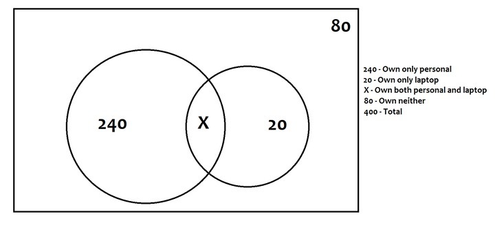 240 households own only desktop computers, 20 households own only laptop computers and 80 households own neither desktop nor laptop computers.