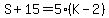 +S+%2B+15+=+5%2A%28+K+-+2+%29+