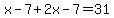 +x+-+7+%2B+2x+-+7+=+31+