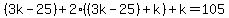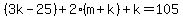 Question 1167095: Maggie, Amy, and Karen are relatives. They have lived a total of 105 years combined. Maggie's age is 25 years than three times Karen's age. Amy's age is twice the sum of Maggie and Karen's ages. Find the age of each woman Found 3 solutions by dkppathak, josgarithmetic, ikleyn:Answer by dkppathak(439) (Show Source):